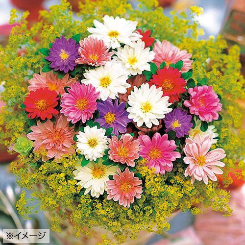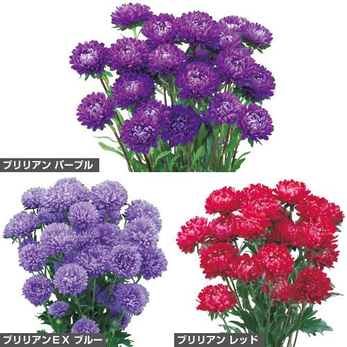 1999年のローズ発表に続き、2001年に4色追加発表。育てやすくカラーバリエーションも豊富で、仏花需要の高かったアスターの中、アレンジメントとしての需要も広げていった。現在は改良種に切り替わっている。