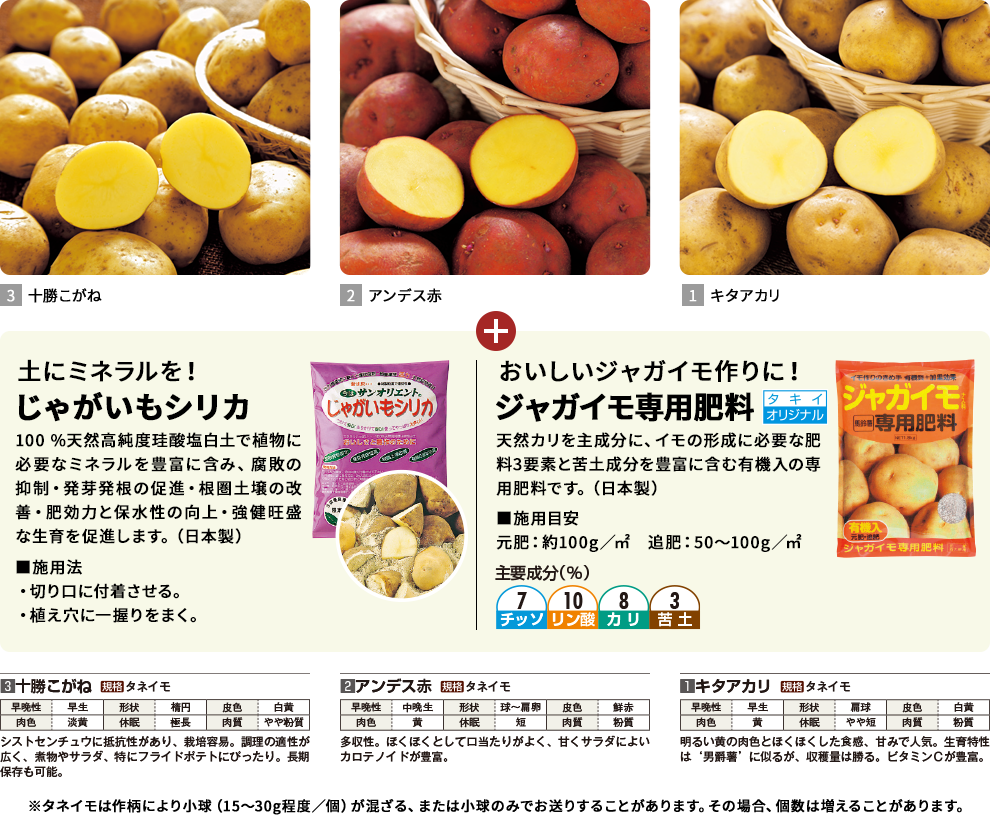 以上3種各1袋 計3袋・肥料、シリカ付き1組