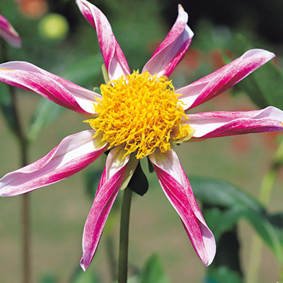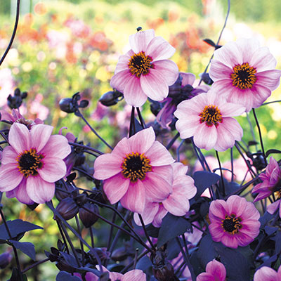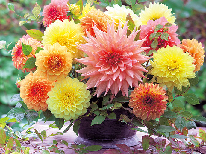 ダリアは庭の主役にも脇役にもなります。例えば、大輪系は優美で華やかな庭の主役に、中輪や小輪はナチュラルな庭の脇役に、またバラエティー豊かなのでダリアだけで庭を彩ることも可能です。気候が涼しくなるとダリアは花をたくさんつけるので、切り花をインテリアに飾って楽しむこともできます。さまざまなシーンに応じて活躍してくれるダリアは心を癒やし、豊かにしてくれることでしょう。