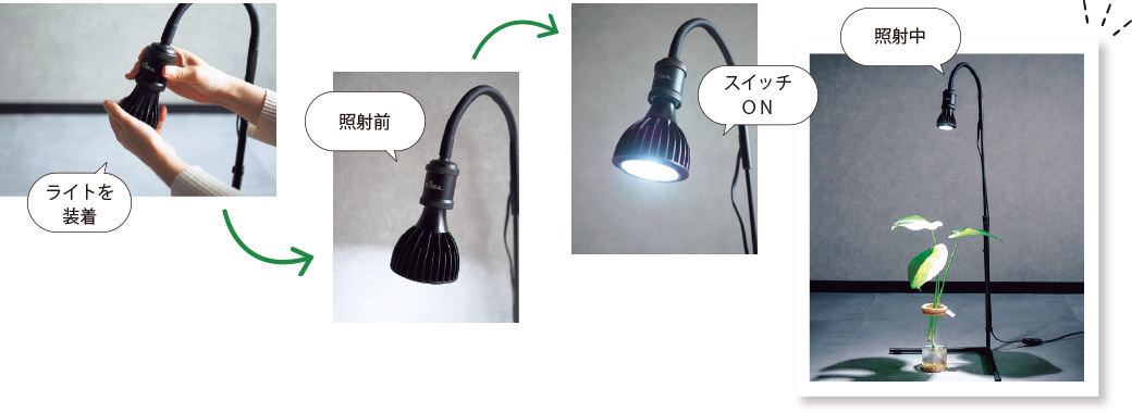 - ●梅雨や冬の時期に日照不足や気温の低下により植物を室内に取り込んだ際も、太陽光の代わりとなる光を補うことができるため、植物の順調な育成が可能です。
