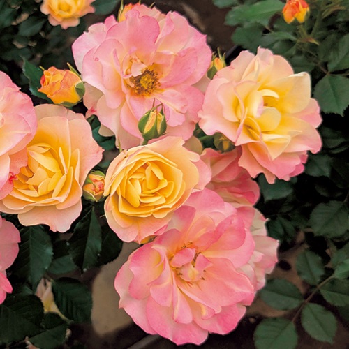 花付きに非常に優れるピンク花の小型品種。コンパクトな樹形で鉢植えにも向く。