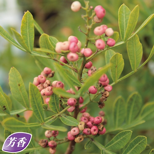ドライフラワーの花材としても人気。葉や茎にとても爽やかな香りがある。別名コショウボク。室内に剪定枝を置いておくと香りが部屋に漂う。ウルシ科
