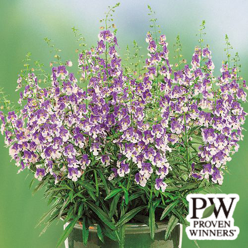分枝力が抜群によく、白と青紫の涼しげな花をたくさんつける。暑さに強く、真夏も咲き続け、株は乱れず美しい草姿を保つ。大輪高性種なので花壇や寄せ植えのポイントに好適。オオバコ科