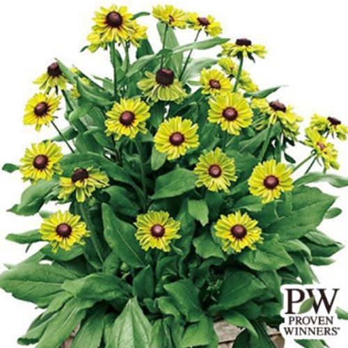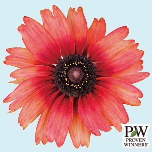 黄色の中心部に赤褐色が入るとても華やかな花色。コンパクトな草姿にブーケのようにたくさん咲く様は見応えある。耐寒・耐暑性に優れ、夏も咲き続ける。キク科。