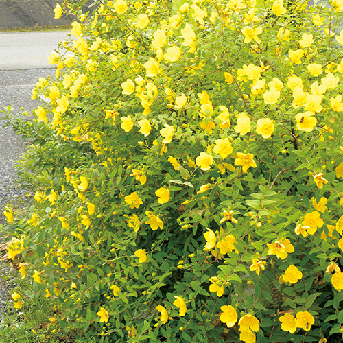 夏の蜜源植物。鮮やかな黄花が、次々と花を咲かせて夏に長期間花を楽しめる。オトギリソウ科