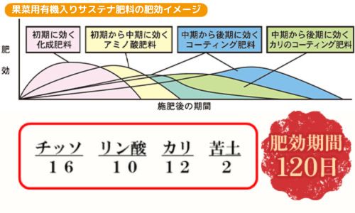 栽培期間が4~5ヶ月程度の作物に最適な果菜のサステナ肥料です。