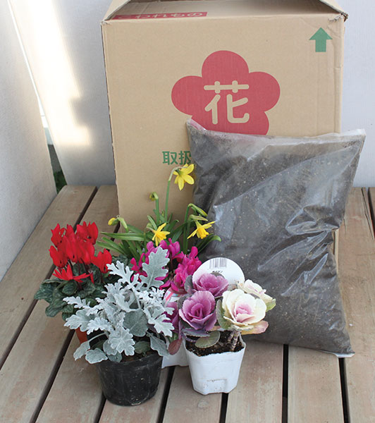 - コルジリネ(1苗)、オキザリス(1苗)、クリサンセマム(1苗)、ムルチコーレ(1苗)、パンジー(1苗)