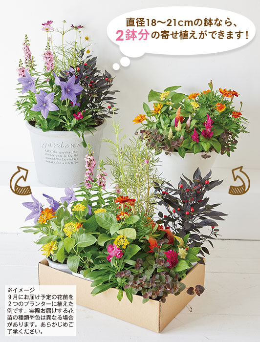 - ■天候などによる生育不良が起きた場合は、品質を優先して品種(植物)を変更してお届けすることがあります。