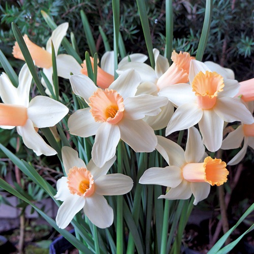 ラッパすいせんの中では早咲き大輪種。ラッパの広がりとフリル感が特徴的。ヒガンバナ科