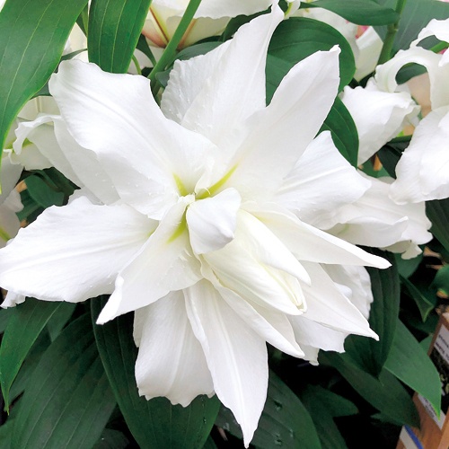 ボリュームある純白の八重品種。丈夫で育てやすい。ユリ科