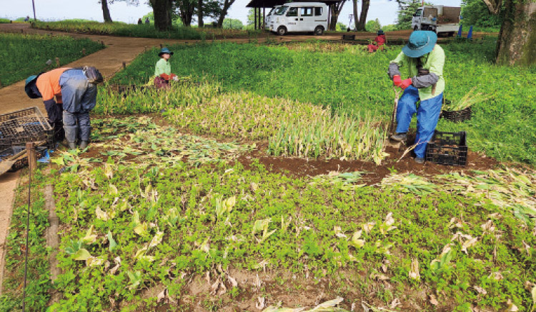開花が終わったら抜き取り作業。この頃には来年のためのデザインが決まっている。