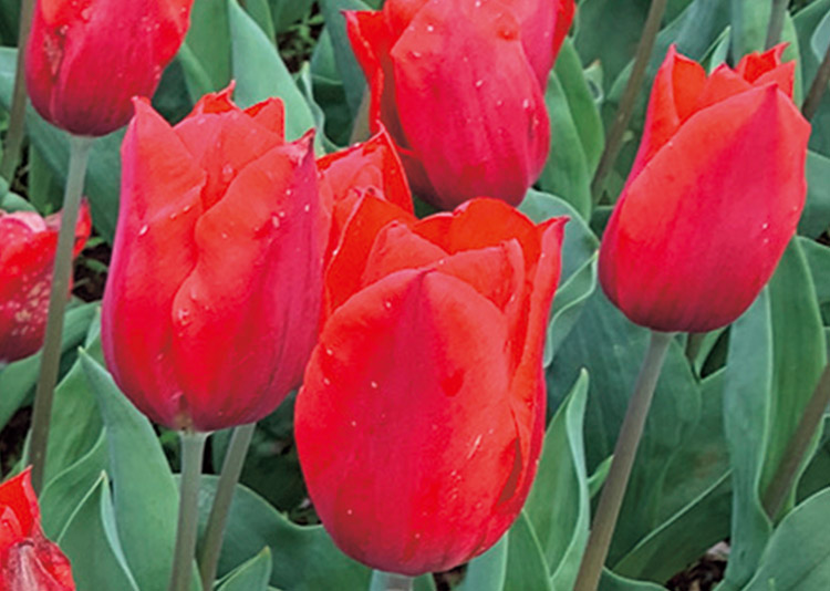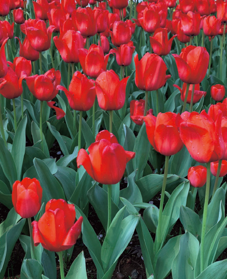 人気の高いチューリップは毎年新しい園 芸品種が生まれ、進化を感じさせる植物の一つ。比較的新しい品種を取り入れれば、目新しさを感じさせるのに一役買ってくれる。