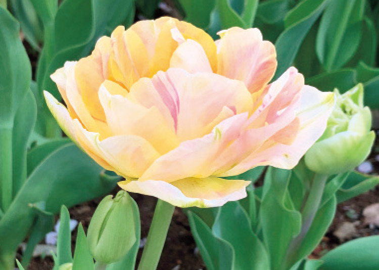 花弁を多数重ねる八重咲きの品種はもこもことした姿が個性的で、「これもチューリップなの?」と人々が足を止