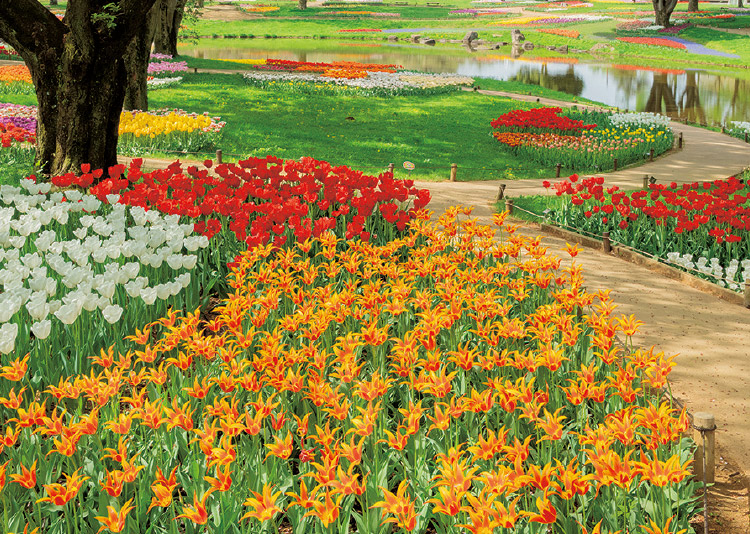 海外の庭園を彷彿とさせる華やかなチューリップガーデン