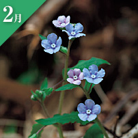 花冠の白い喉と、丸く優しい花形がマッチした美花。山地の林縁などの湿り気のある場所に自生し、極端な乾燥は避けて管理する。ムラサキ科。