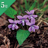 花径2〜3cmと大きな淡〜濃紫花。花弁のサクラのような切れ込みが名前の由来ともいわれる。スミレ科。